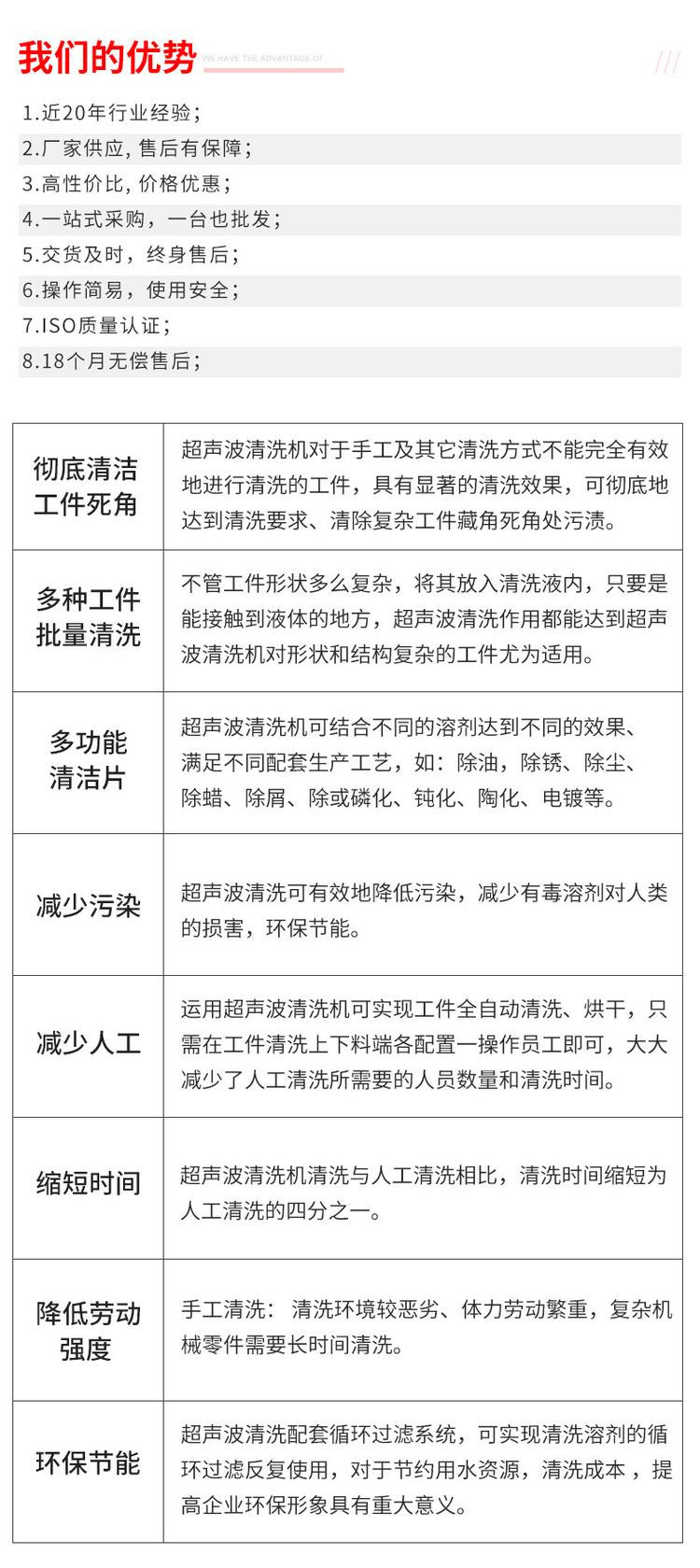 鋁合金壓鑄件噴淋清洗機是一臺履帶式超聲波清洗烘干線,采用特制網(wǎng)鏈傳動輸送工件,具有超聲波粗洗、超聲波精洗、鼓泡過水、切水、烘干、等功能的新穎連續(xù)式清洗烘干設(shè)備。由人工將工件放在特制的傳動網(wǎng)鏈上,工作時,清洗工件置于輸送帶上,依次通過清洗室、清洗室、漂洗室、切水室、烘干室完成清洗、漂洗、過水、吹水、烘干等流程后出料,超聲波槽回液經(jīng)過濾處理循環(huán)使用,該機具有工位多,功能全,結(jié)構(gòu)合理,操作方便,清洗效果好的優(yōu)點,這對于流水線零件的清洗,改善勞動環(huán)境,節(jié)省勞動力,提高清洗和吹干質(zhì)量,具有重要的意義,適用范圍:如LED燈杯、燈座、燈罩、燈殼、鋁殼、沖壓鋁件,電機外殼、散熱器、五金配件等等。