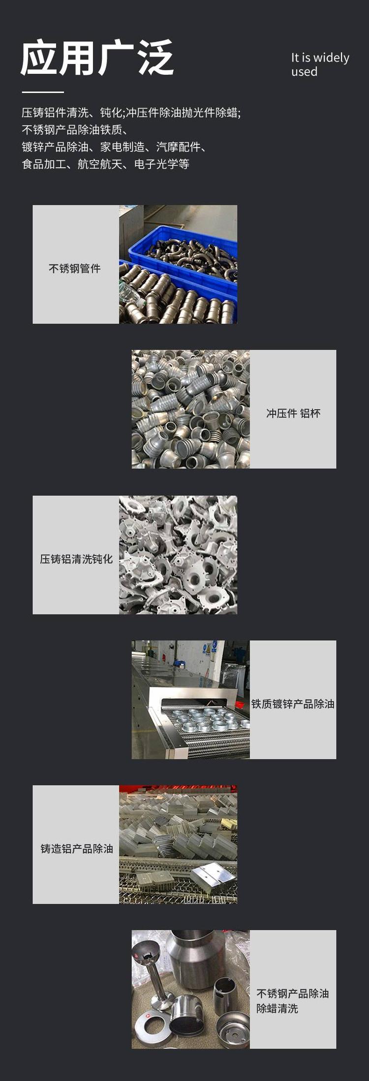 鋁合金壓鑄件超聲波清洗機是一臺履帶式超聲波清洗烘干線,采用特制網(wǎng)鏈傳動輸送工件,具賄超聲波粗洗、超聲波精洗、鼓泡過水、切水、烘干、等功能的連續(xù)式清洗烘干設(shè)備。只需要人工將工件放在特制的傳動網(wǎng)鏈上,工作時,清洗工件置于輸送帶上,依次通過清洗室、清洗室、漂洗室、切水室、烘干室完成清洗、漂洗、過水、吹水、烘干等流程后出料,超聲波槽回液經(jīng)過濾處理循環(huán)使用,鋁合金壓鑄件超聲波清洗機具有工位多,功能全,結(jié)構(gòu)合理,操作方便,清洗效果好的優(yōu)點,這對于流水線零件的清洗,改善勞動環(huán)境,節(jié)省勞動力,提高清洗和吹干質(zhì)量,具有重要的意義。